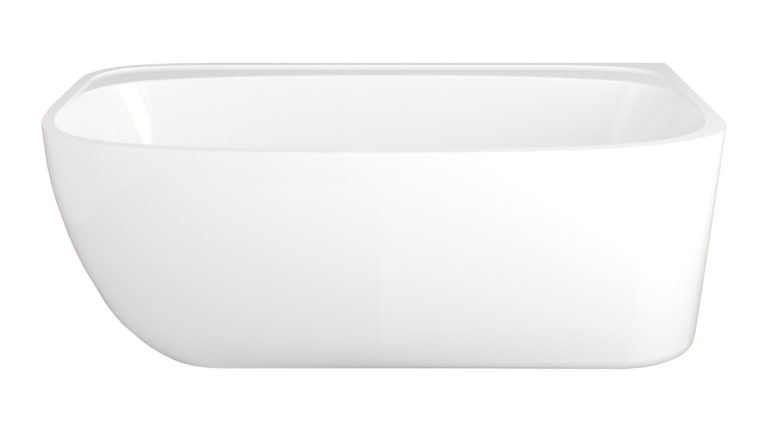 Bain autoportant en coin aux lignes douces et arrondies, mariant simplicité et délicatesse.